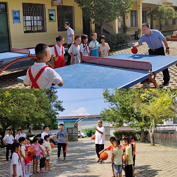 本次活動分兩個階段開展。第一階段,以愛國主義教育為切入點,分別在良田小學(xué)和東山小學(xué)開展。黃家偉帶領(lǐng)團(tuán)員與全體師生開展升國旗、唱國歌活動,在激昂的歌聲中向國旗敬禮、向祖國致敬。隨后,黃家偉代表集團(tuán)黨委向兩所學(xué)校捐贈物資,用于改善當(dāng)?shù)剞r(nóng)村教學(xué)條件。在學(xué)生們課間休息時間,團(tuán)員們還陪伴學(xué)生們上了一堂豐富有趣的體育課。團(tuán)員們還與學(xué)校老師進(jìn)行交流座談,表達(dá)了關(guān)心與寄語。