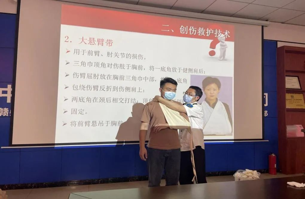 在應急救護知識培訓階段,贛州市急救中心醫(yī)務人員對應急救護知識進行現(xiàn)場授課,重點對止血包扎、海姆立克急救法進行實操演練,大家現(xiàn)場學習了如何利用生活中隨處可見的物品對較小創(chuàng)傷進行自救的方法。