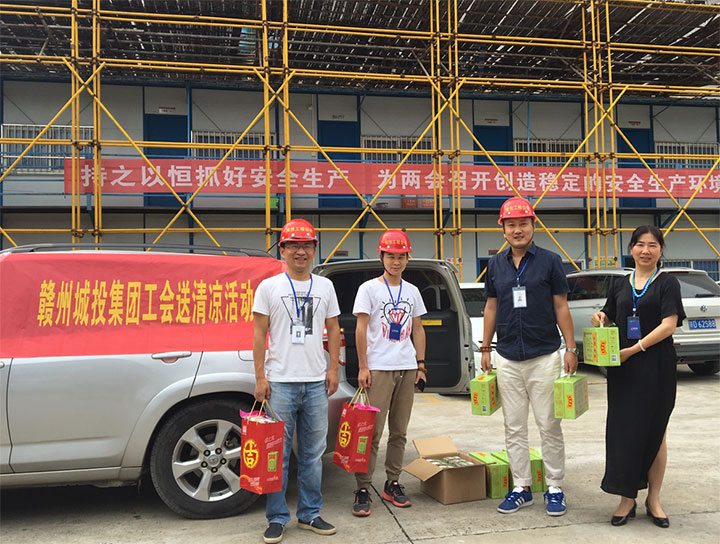 盛夏酷暑,驕陽(yáng)似火。7月16日至7月23日,贛州城投集團(tuán)工會(huì)認(rèn)真貫徹落實(shí)集團(tuán)黨委的指示精神,心系項(xiàng)目一線的廣大干部員工,積極開(kāi)展“夏季送清涼”活動(dòng),認(rèn)真做好防暑降溫工作,用實(shí)際行動(dòng)踐行黨的十九大精神,聯(lián)系關(guān)愛(ài)干部員工,發(fā)揮橋梁紐帶作用。集團(tuán)工會(huì)主席、總經(jīng)理助理肖暉帶隊(duì)走訪慰問(wèn)。