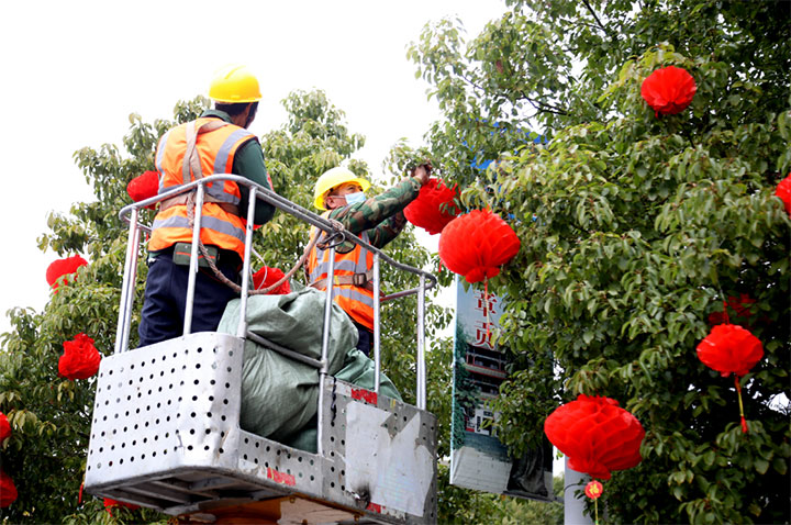 自1月18日開始,生態(tài)投資公司每日組織4輛登高車及70多位作業(yè)人員有條不紊的開展施工,預(yù)計2月7日竣工。本次春節(jié)氛圍營造預(yù)計將在中心城區(qū)安裝懸掛LED中國結(jié)燈箱300余組、LED燈籠350余個、各規(guī)格塑紙燈籠6.8萬余個、其他植絨布及綢緞燈籠近5000余個、雕塑小品4處、彩旗300余面,讓整個中心城區(qū)裝飾一新,紅紅火火迎接新年。供稿:陳 蓮 丁愛玲編輯:劉家燦 李德文