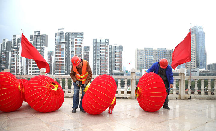 春節(jié)臨近,國內(nèi)疫情仍面臨著“外防輸入、內(nèi)防反彈”的壓力,為更好地給市民朋友營造歡樂喜慶的春節(jié)氛圍,贛州城投集團下屬子公司生態(tài)投資公司正在中心城區(qū)的六個主要節(jié)點(贛州火車站、高鐵西站、黃金機場等)、十條主要道路(長征大道、文清路、厚德路、健康路、興國路等)、六條主要橋梁(飛龍大橋、西河大橋、楊梅渡大橋、章江大橋等)、八個主要公園(黃金廣場、贛州公園、中央生態(tài)公園、八境公園等)緊鑼密鼓地進行春節(jié)氛圍營造工作,打造“留贛過年”的溫暖年味。