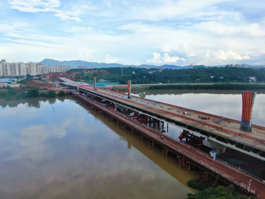 6月30日,由贛州城投集團(tuán)組織實(shí)施、中建三局集團(tuán)有限公司承建的贛州市蟠龍大橋項(xiàng)目主橋頂推順利合龍。