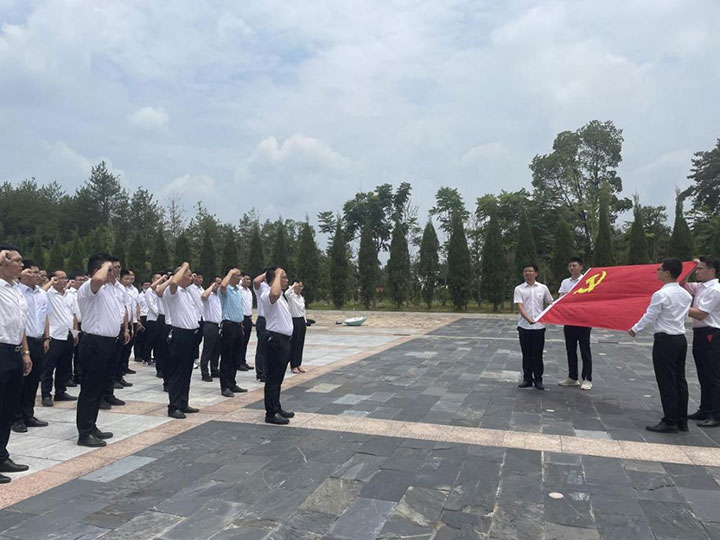 大家首先前往蘇區(qū)時(shí)蘇維埃政府工作的模范鄉(xiāng)——長(zhǎng)岡鄉(xiāng),領(lǐng)悟中國(guó)共產(chǎn)黨人深厚的為民情懷、科學(xué)的思想方法和務(wù)實(shí)的工作作風(fēng)。隨后大家懷著對(duì)革命先烈無(wú)比崇高的敬意瞻仰了中央蘇區(qū)烈士陵園。在烈士紀(jì)念碑前,整齊列隊(duì),懷著無(wú)比崇敬的心情,向革命先烈敬獻(xiàn)花籃,默哀并三鞠躬,深切緬懷革命先烈。全體黨員在莊嚴(yán)的黨旗下,高舉右拳重溫入黨誓詞,再次接受心靈的凈化和洗禮,銘記共產(chǎn)黨員初心使命。工程管理公司一、二支部還宣講了黨史故事,講述了江善忠“死到陰間不反水,保護(hù)共產(chǎn)黨萬(wàn)萬(wàn)年”和李美群“馬前托孤女英雄”的英烈事跡。