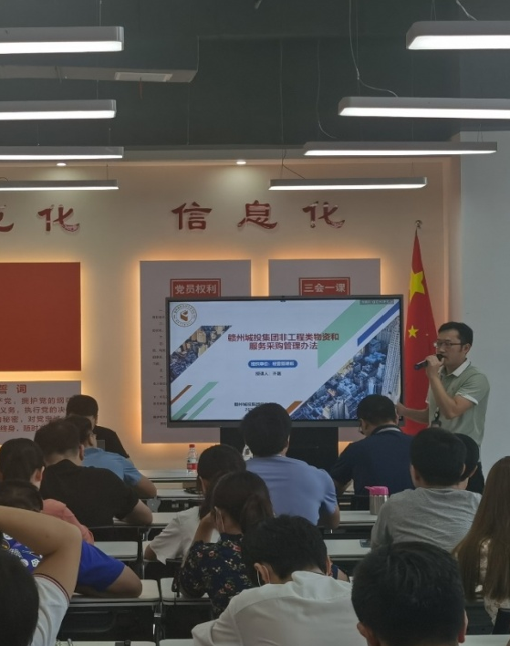 本次培訓(xùn)共分兩方面內(nèi)容:一是對《贛州城市投資控股集團(tuán)有限責(zé)任公司非工程類物資和服務(wù)采購管理辦法》、《贛州城市投資控股集團(tuán)有限責(zé)任公司非工程類物資和服務(wù)采購管理辦法》、《贛州城市投資控股集團(tuán)有限責(zé)任公司網(wǎng)絡(luò)安全事件應(yīng)急預(yù)案(試行)》及《贛州城市投資控股集團(tuán)有限責(zé)任公司資產(chǎn)租賃管理辦法》三個制度進(jìn)行了宣貫;二是特別邀請了中咨江西工程有限公司投資經(jīng)理盧凱對投后管理進(jìn)行專題培訓(xùn)授課,主要針對投資監(jiān)管的三道防線、投資項(xiàng)目投前決策階段及實(shí)施階段所包含的工作內(nèi)容、投資項(xiàng)目風(fēng)險研判以及應(yīng)對措施、投資項(xiàng)目實(shí)施后的效果和效益分析方法進(jìn)行了全面深入講解。