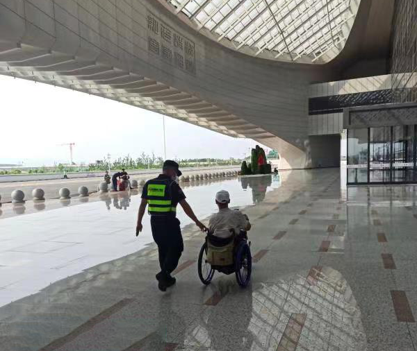 5月12日,支部黨員值班巡邏時,發(fā)現(xiàn)一名殘疾人士坐著輪椅尋找進站口,看見龐大的西站各條通道,這位旅客顯得有點焦急,秩序組長幸慶華趕緊小跑過去,耐心的詢問旅客的需要,指引旅客進站路線,為保證旅客安全,一直護送到了進站口,到達進站口時,旅客握住工作人員的手連聲道謝。