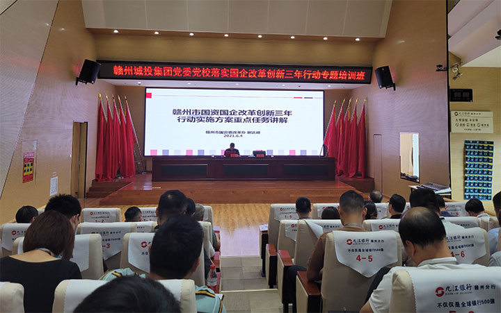 6月23日下午,贛州城投集團(tuán)黨委黨校舉辦落實(shí)國企改革創(chuàng)新三年行動專題培訓(xùn)班,集團(tuán)黨委委員、總工程師王遠(yuǎn)平,黨委委員、紀(jì)委書記曾富有出席,市國資委宣教科科長謝達(dá)迎應(yīng)邀作專題輔導(dǎo),集團(tuán)全體中層管理人員,相關(guān)部門、子公司人員共計70余人參加培訓(xùn)。