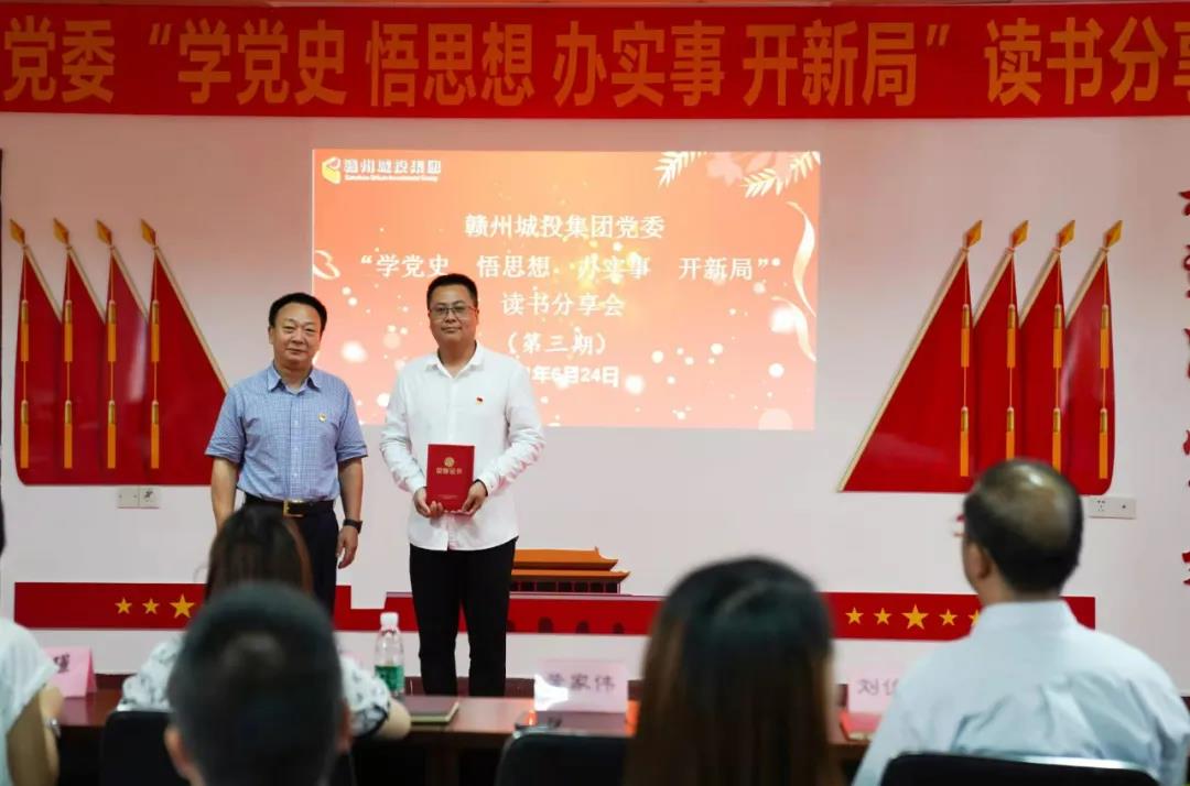 蟬鳴荷香六月天,黨史學(xué)習(xí)正當(dāng)時。為推動黨史學(xué)習(xí)教育走深走實, 日前,贛州城投集團黨委舉辦第三期“學(xué)黨史 悟思想 辦實事 開新局”讀書分享會。集團黨委副書記黃家偉出席并講話,集團黨群工作部、辦公室代表,市建筑設(shè)計院、天成設(shè)計院黨支部全體黨員參加活動。