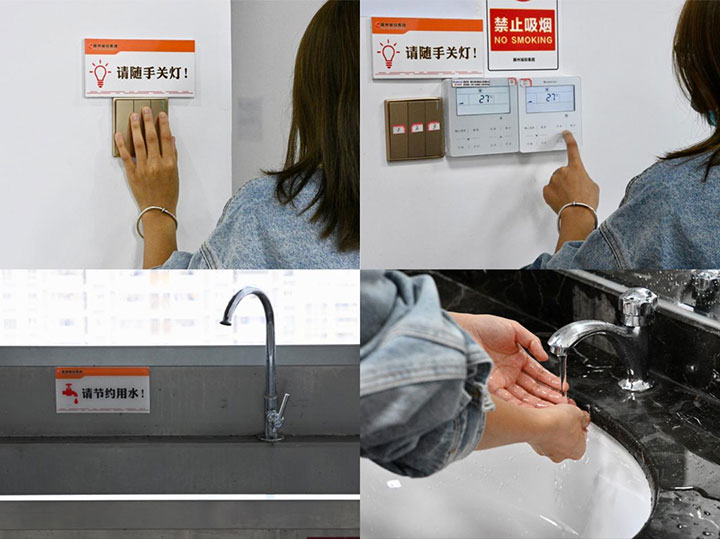 在贛州城投集團(tuán)辦公區(qū)域6—14樓、各子公司(含合資子公司)以及工程項(xiàng)目部辦公區(qū),在電燈開關(guān)邊上、衛(wèi)生間洗手區(qū)等區(qū)域,顯眼處均張貼了各種節(jié)能降耗宣傳標(biāo)語,引導(dǎo)職工節(jié)約用水、用電,避免使用一次性紙杯、餐盒等消耗品,鼓勵(lì)職工使用新能源汽車、多乘坐公共交通工具出行,減少使用私家車,倡導(dǎo)將綠色低碳理念融入生活習(xí)慣。廣大職工也紛紛從身邊點(diǎn)滴的小事做起,將節(jié)能減排理念延伸到工作、生活的各環(huán)節(jié),在集團(tuán)上下形成厲行節(jié)約、反對(duì)浪費(fèi)的良好局面。