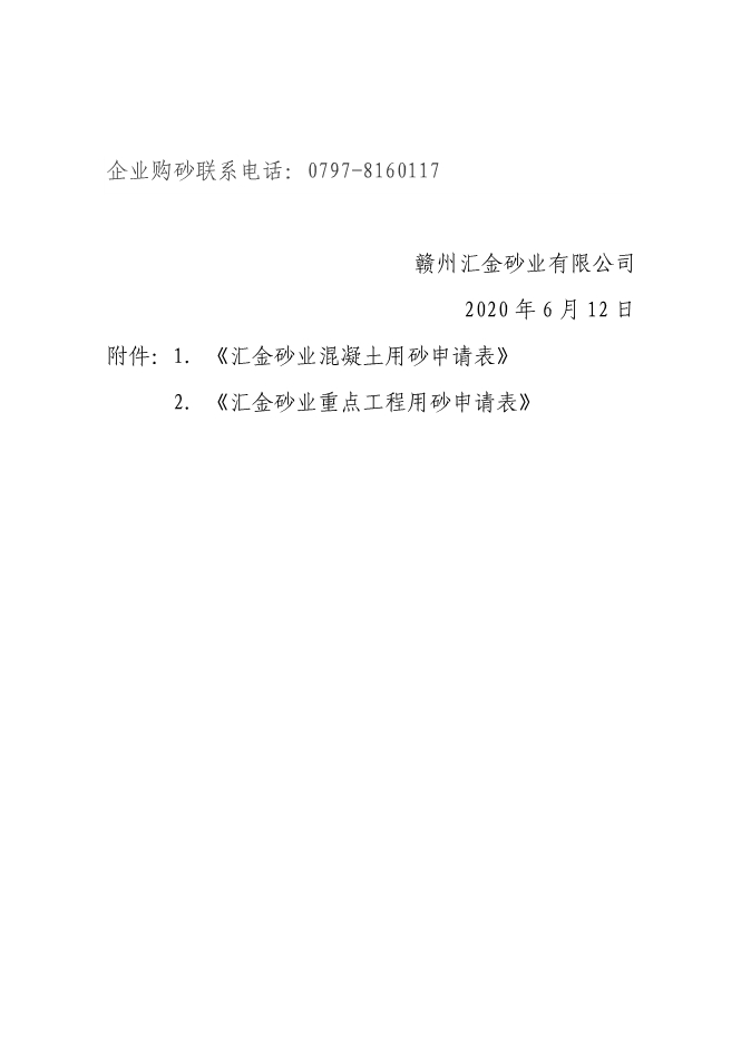 附件:1.《匯金砂業(yè)混凝土用砂申請表》 2.《匯金砂業(yè)重點(diǎn)項(xiàng)目用砂申請表》