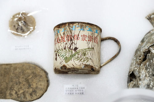 △這是2020年9月26日在韓國(guó)仁川的志愿軍烈士遺骸裝殮儀式現(xiàn)場(chǎng)拍攝的部分志愿軍烈士遺物。當(dāng)日,第七批在韓中國(guó)人民志愿軍烈士遺骸裝殮儀式在韓國(guó)仁川舉行,中韓雙方27日在仁川國(guó)際機(jī)場(chǎng)舉行遺骸交接儀式。此次韓方向中方交接117位在韓中國(guó)人民志愿軍烈士遺骸及相關(guān)遺物。新華社記者 王婧嬙 攝